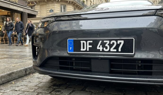 Fond noir, lettres blanches, bande bleue bien française sur le côté… mais le véhicule n’a rien de la voiture de collection d’un passionné. Beaucoup d’automobilistes restent avec la question en tête sans oser demander.