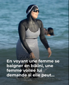 Une des traductions dit en effet : « Et dis aux croyantes qu’elles baissent leurs regards, qu’elles gardent leur chasteté, et qu’elles ne montrent de leurs parures que ce qui en paraît, et qu’elles rabattent leur voile sur leur poitrine ; et qu’elles ne montrent leurs parures qu’à leur mari, ou à leur père ».