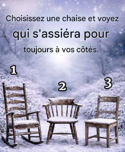 Chaise 2 : La chaise forte et stable symbolise une personne qui construit votre vie à vos côtés. Elle vous choisit sans cesse, dans les moments difficiles comme dans l’incertitude. Elle ne cherche ni à rivaliser ni à vous contrôler ; elle évolue avec vous, célèbre vos réussites et partage vos fardeaux. Ce lien se tisse souvent avec un conjoint, un partenaire de longue date ou un allié précieux dans la vie.