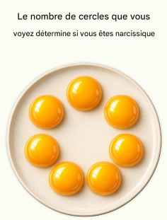 À première vue, l’image semble inoffensive : une assiette propre, sept jaunes d’œufs brillants disposés en un anneau presque parfait et un titre accrocheur affirmant que le nombre de cercles que vous voyez peut déterminer si vous êtes narcissique.