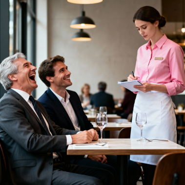 « Je vous prie de m’excuser pour le retard, monsieur. La cuisine s’assurait que votre steak soit cuit à la perfection afin que vous ne vous plaigniez plus. »