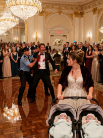 J’ai trouvé une place près du buffet, partiellement cachée par un grand arrangement floral. Je berçais la poussette. Emma dormait, mais Noah était grognon. Il s’est mis à gémir, son gémissement couvrant la douce musique jazz du groupe.